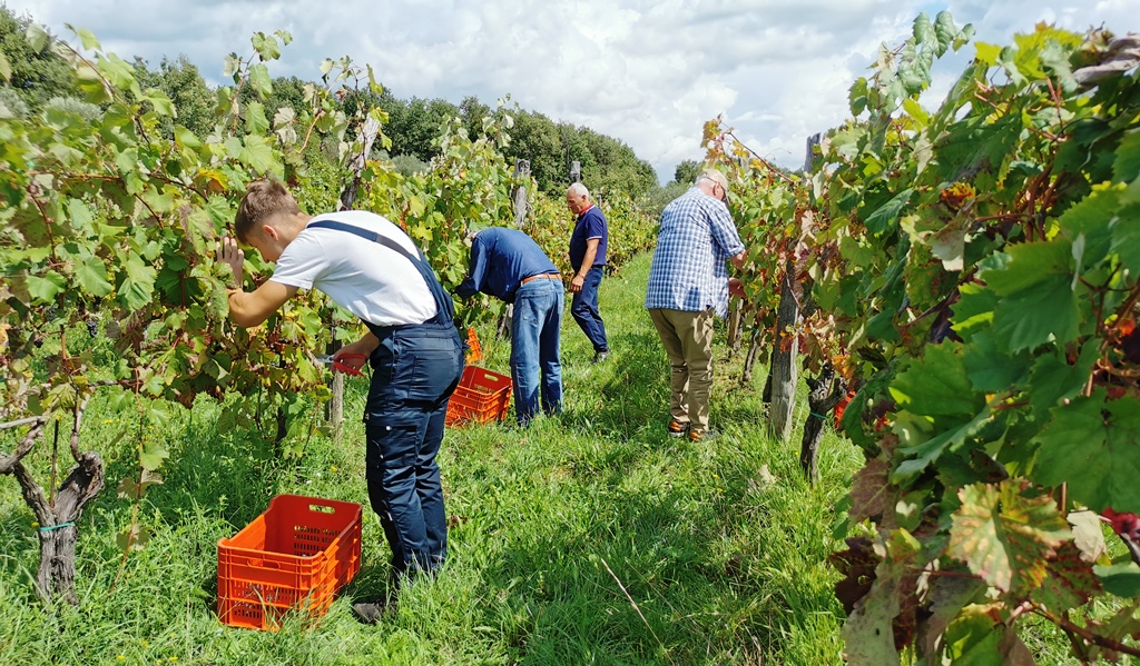 Na ekološkem vinogradništvu Rodica v Truškah so konec avgusta začeli z letošnjo trgatvijo, pretekli četrtek pa smo se člani našega društva udeležili prav posebne trgatve…