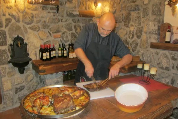 V odprti zidanici Pavlin, prav tako na razgledni Trški gori, pa so nas gostitelji pričakali z razkošnim šopkom domačih, tradicionalnih dobrot. Pravzaprav se je miza šibila od pogač, kruhov, narezkov, krvavic, pečenic – vse ob spremljavi ustreznih prilog in zelenjave, dokler ni prišla na mizo še glavna jed izpod peke; več vrst mesa, krompir, zelenjava… Da ne govorim o zaključku kulinaričnega užitka, stkanega iz zavitkov, štrudlov in potic. In seveda je bil v kozarcih – On! Cviček! Dolenjski posebnež iz zvrsti rdečih in belih sort grozdja. Vinogradniki poleg t. i. cvičkovih sort – žametne črnine, modre frankinje, kraljevine in laškega rizlinga – pridelujejo tudi druga sortna vina in penine.