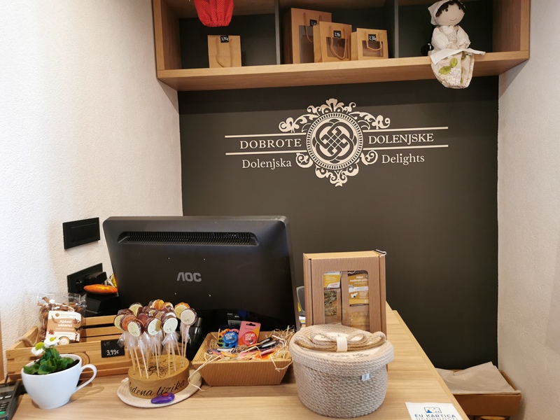 Svojevrstni razstavni prostor je tudi trgovina trebanjskega Zavoda za kulinariko in turizem Dobrote Dolenjske, ki pod to kolektivno blagovno znamko združuje že več kot 100 različnih ponudnikov kulinaričnih in rokodelskih izdelkov iz območja Dolenjske, Kočevske in Bele krajine. Na steni si lahko ogledamo Kulinarični zemljevid Dolenjske in Kočevske, na spletni strani zavoda je dostopen tudi v digitalni obliki, Na bogato obloženih prodajnih policah trgovine najdemo ročno izdelane piškote, marmelade, zeliščne čaje, sirupe, vložnice, suhomesnate izdelke, sire, vina in različne rokodelske izdelke.