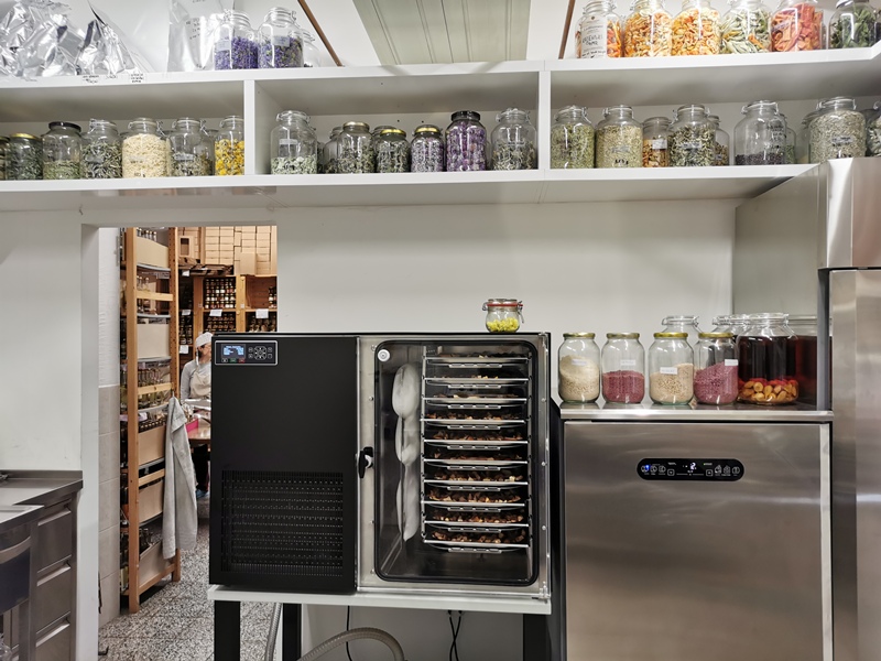 V proizvodnih prostorih in shrambi so na policah številni kozarci, v katerih hranijo liofilizirana zelišča in sadje. Z uporabo liofilizatorja, torej postopka sušenja z zamrzovanjem, zelišča, sadje in zelenjava ohranijo večji delež mineralov, vitaminov, arom, okusa in hranilne vrednosti. S podobnim ciljem uporabljajo tudi ekstraktor.